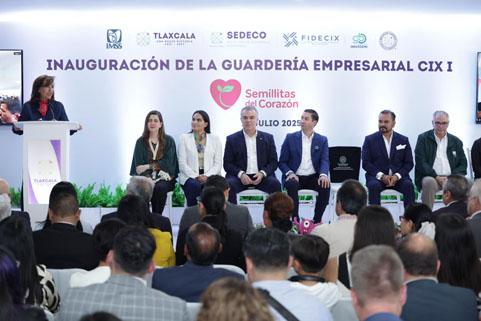 La gobernadora Lorena Cuéllar Cisneros encabezó la inauguración de la primera Guardería Empresarial del país “Semillitas del Corazón” en Ciudad Industrial Xicohténcatl I (CIX), que opera bajo un modelo de corresponsabilidad entre el gobierno, el sector privado y el Instituto Mexicano del Seguro Social (IMSS) pionero en su tipo a nivel nacional que se replicará en otros estados del país.