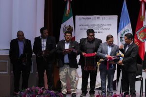La gobernadora Lorena Cuéllar Cisneros encabezó la ceremonia de hermanamiento e intercambio histórico cultural con San Juan Argueta, Sololá, del país de Guatemala, celebrado en el marco de la conmemoración de los 500 años de la fundación de Tlaxcala.