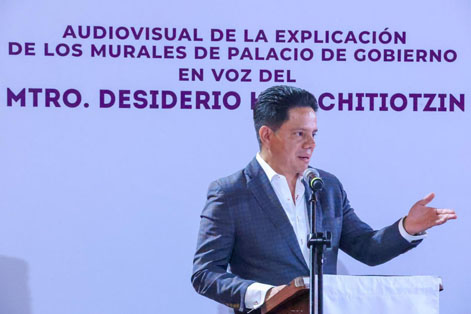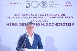 En el marco de los 500 años de la fundación de la ciudad de Tlaxcala, el Gobierno del Estado presentó un audiovisual interactivo que rescata la voz viva del maestro Desiderio Hernández Xochitiotzin, permitiendo escuchar su interpretación de los murales en el Palacio de Gobierno, los cuales narran la historia del pueblo tlaxcalteca.