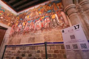 “El primer código ofrece una sinopsis general de la obra mural; el segundo, una explicación completa; el tercero, incluye una versión escrita; y el cuarto presenta la narración subtitulada en inglés, ampliando así el acceso a visitantes nacionales y extranjeros”, detalló.