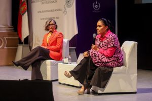 La titular del Ejecutivo asistió como invitada especial a la conferencia magistral “Violencias de género en contra de mujeres y niñas indígenas en México en contextos públicos, privados e institucionales”, impartida por la activista y defensora zapoteca, Eufrosina Cruz Mendoza, como parte de las actividades de los 16 días de activismo, en el marco de la conmemoración del 25 de noviembre, Día Internacional para la Eliminación de la Violencia contra la Mujer.