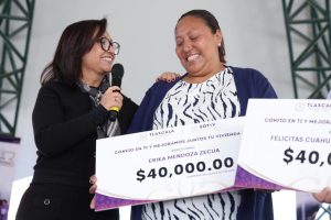 Como parte del evento, se realizó la entrega simbólica de cheques a las beneficiarias Felicitas Cuatle Nezahualcóyotl, Erika Mendoza Zecua y Maricela Gómez Moreno.